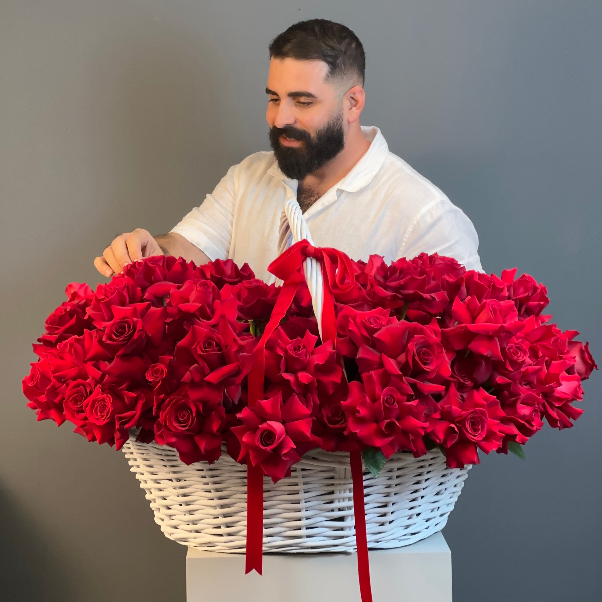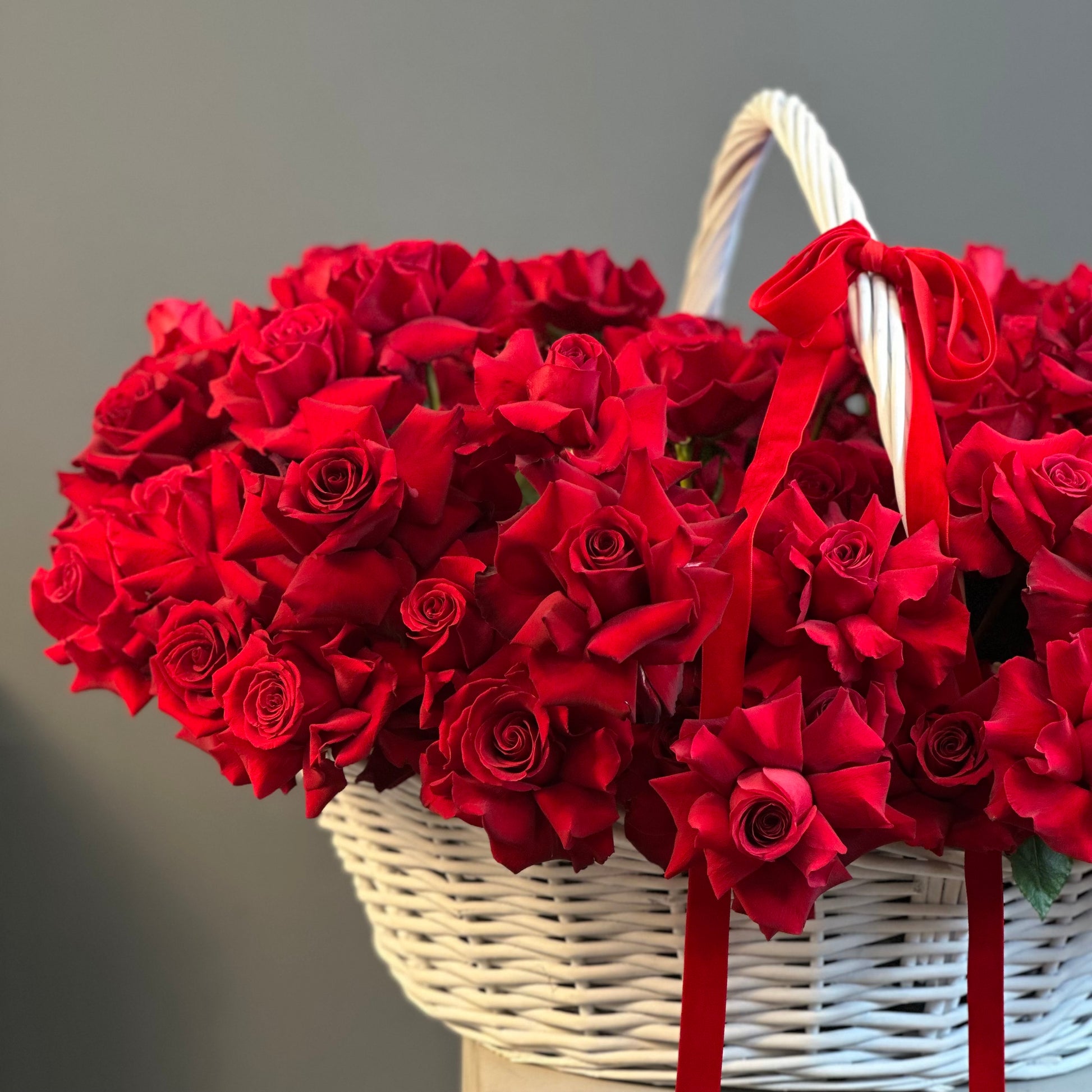 The Ariel Basket is a stunning basket of 100 Ecuadorian fresh roses , deep red roses elegantly arranged in a matching red basket. Perfect for expressing love and admiration, this luxurious arrangement makes an unforgettable gift for anniversaries, Valentine’s Day, birthdays, or any special occasion. The vibrant red roses and chic basket presentation create a bold, romantic statement that will delight anyone who receives it. A bouquet perfect for celebrating Valentine’s Day