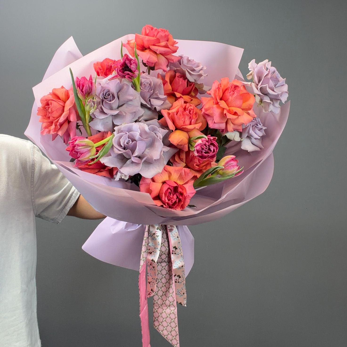 Radiant and graceful, Coral Charm is a bouquet that blends soft elegance with vibrant beauty. This delightful arrangement features 5 Premium Tulips, 8 Lavender Ecuador Roses, and 10 Peach Ecuador Roses, creating a stunning mix of pastel and warm coral tones. The delicate tulips bring a fresh seasonal feel, while the luxurious Ecuador roses add richness, softness, and depth to the bouquet.