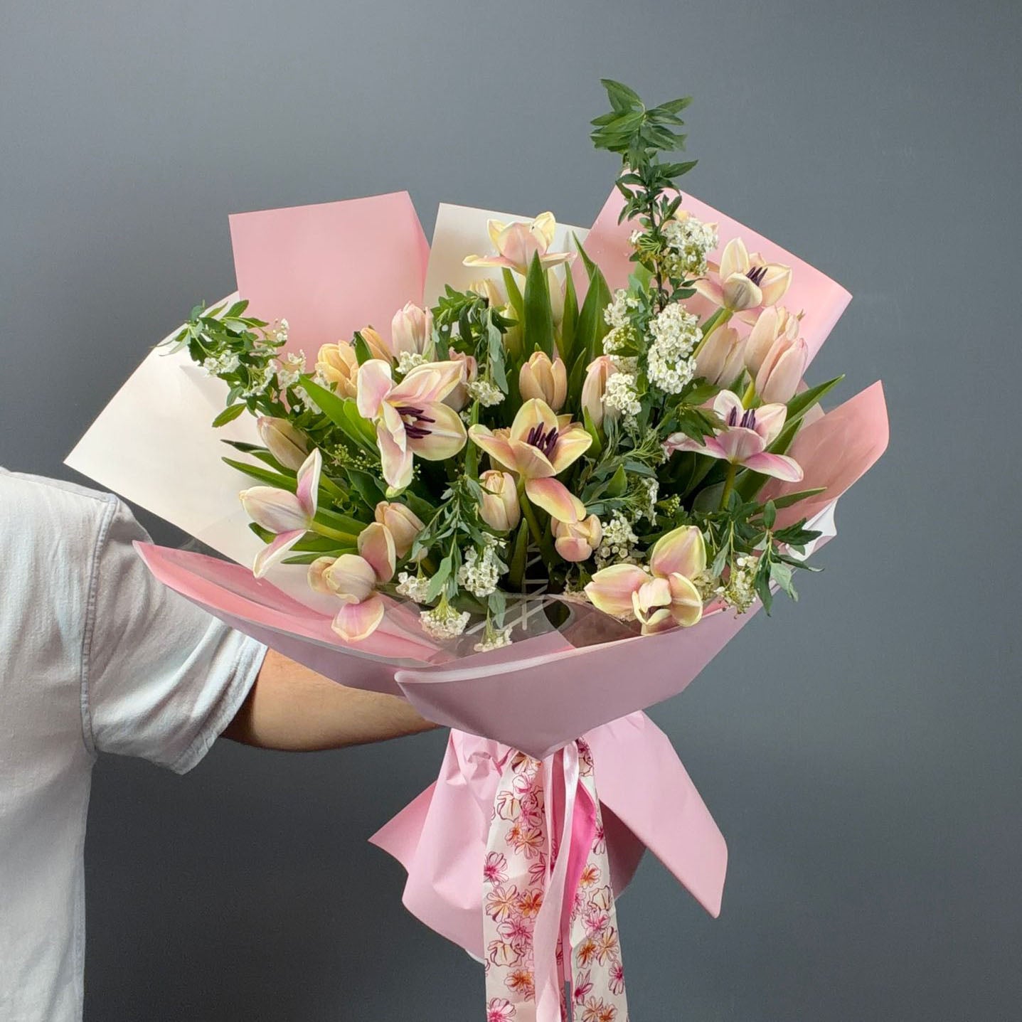 Fresh, cheerful, and full of seasonal charm, Garden Tulip is a vibrant bouquet that captures the beauty of spring. This elegant arrangement features 21 Tulips and 10 Spring Flowers, creating a lively mix of soft colors and natural textures. The graceful tulips bring a fresh, uplifting feel, while the seasonal blooms add a playful garden-inspired touch.