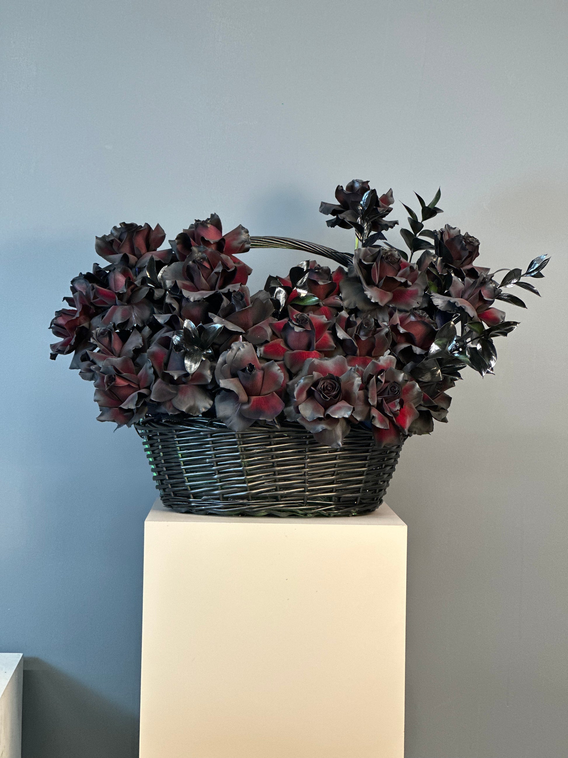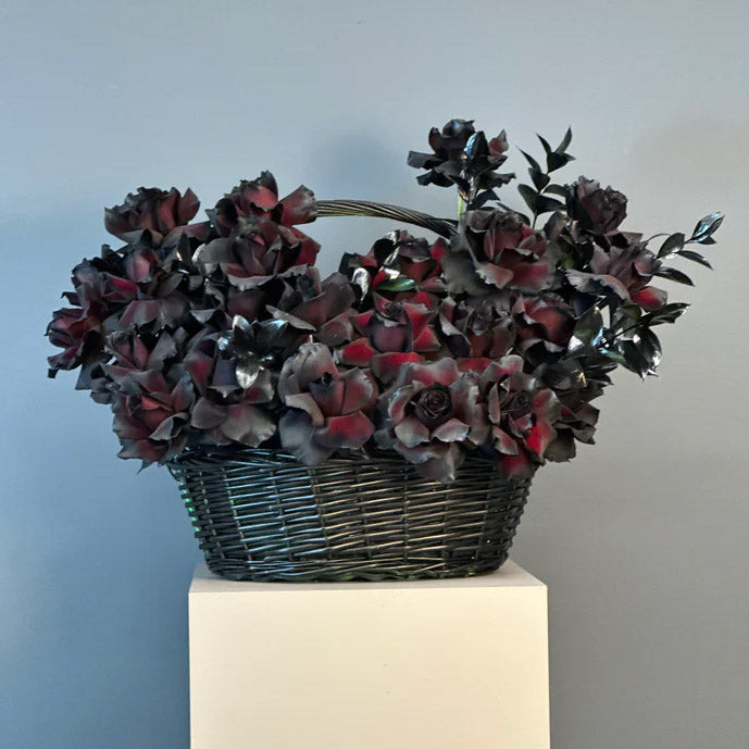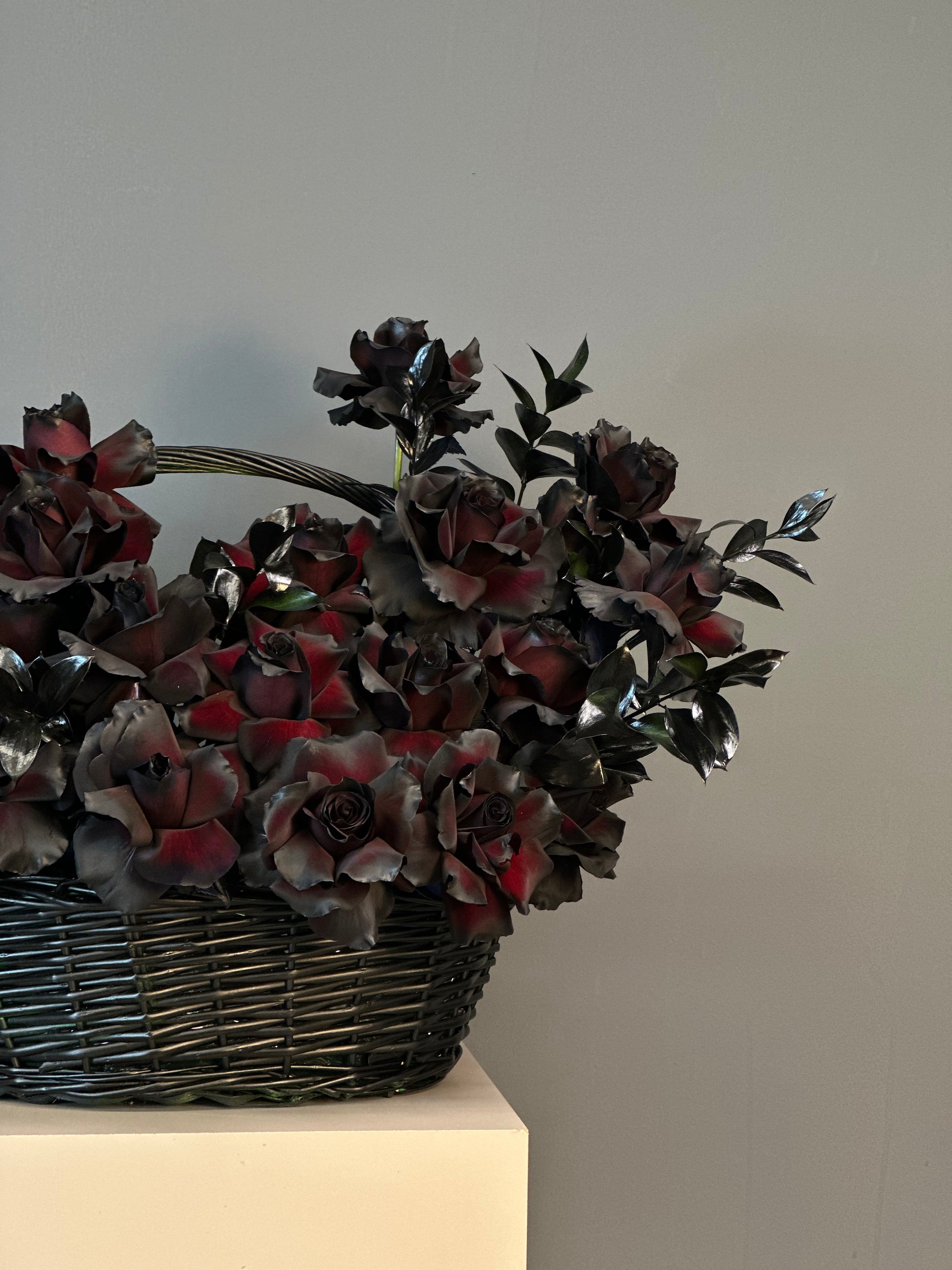 The Venom Flower Basket is a bold and striking floral arrangement, featuring 50 deep, dark-toned blooms artfully arranged in a chic basket. Its dramatic colors and modern design make it perfect for making a statement, whether for special occasions, corporate gifts, or as a unique centerpiece. A captivating bouquet for anyone who loves daring and sophisticated floral style.
